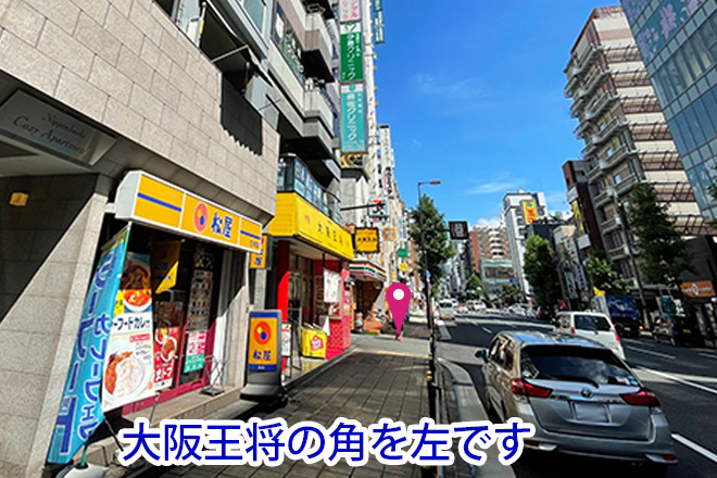 日本橋駅2番出口を出ると、日本橋1交差点の北東角です。堺筋を北の方向に進み約75メートルです。
